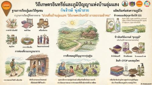 • ด้านหัตถกรรมและภูมิปัญญา: มีการสาธิตและให้ความรู้ผ่านฐานกลุ่มทอผ้าไหม และฐานเครื่องจักสาน ซึ่งสะท้อนถึงทักษะฝีมือของคนในชุมชน